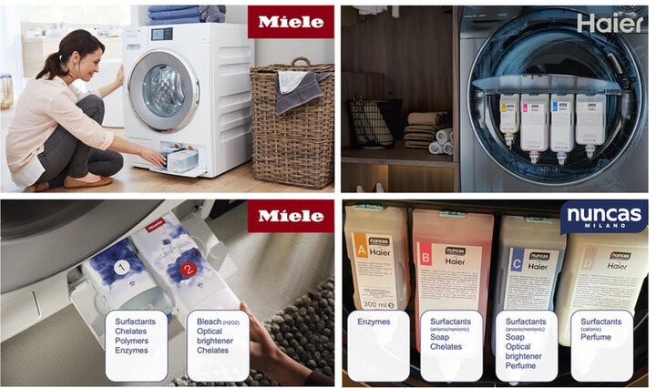 The market landscape involves close interaction between appliance manufacturers and detergent formulators. Appliance manufacturers such as Miele and Haier have pioneered systems that illustrate different approaches to auto-dosing, as shown in Figure 2.