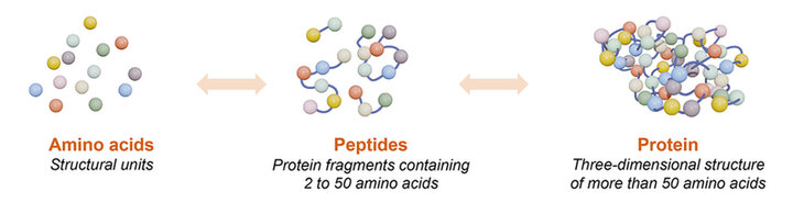Peptides are small chains of 2 to 50 amino acids linked by peptide bonds (1). As peptide chains form between joining of the primary structure of amino acids, they may enlarge to become oligopeptides, which gather between 10 to 20 amino acids in the chain. Beyond 20 amino acids, the peptide is an unbranched chain named a polypeptide (Figure 1).