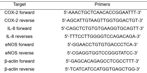 Table 1. Primers of COX-2, IL‐8, eNOS , and β-actin for qRT‐PCR.
