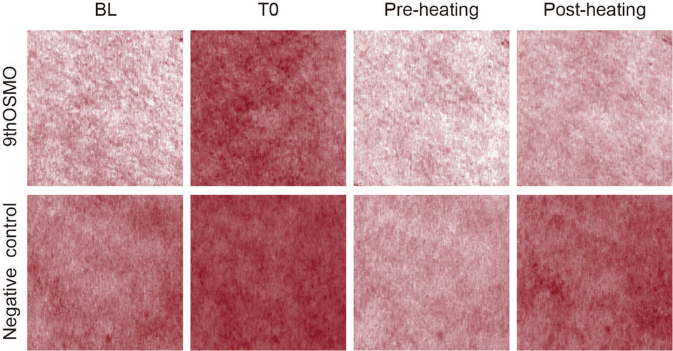 In this study, the effects of 9thOSMO on Vascular permeability and skin redness associated effects were determined using various models. In vitro experiments use lipopolysaccharide (LPS) as an inflammatory response inducer. The LPS-induced in vitro inflammation model shares similarities with human skin inflammatory diseases (e.g., atopic dermatitis, psoriasis) in terms of inflammatory factor release and skin barrier function disruption. VE-Cadherin immunofluorescence staining and FITC-dextran permeability experiments demonstrated that the exposure of HUVECS to the pro-inflammatory stimulus LPS led to a significant increase in endothelial permeability. The incubation of endothelial monolayers with 9thOSMO decreased LPS-induced gaps. It suggests that this 9thOSMO might contribute to the maintenance of vascular integrity and functionality under inflammatory conditions.