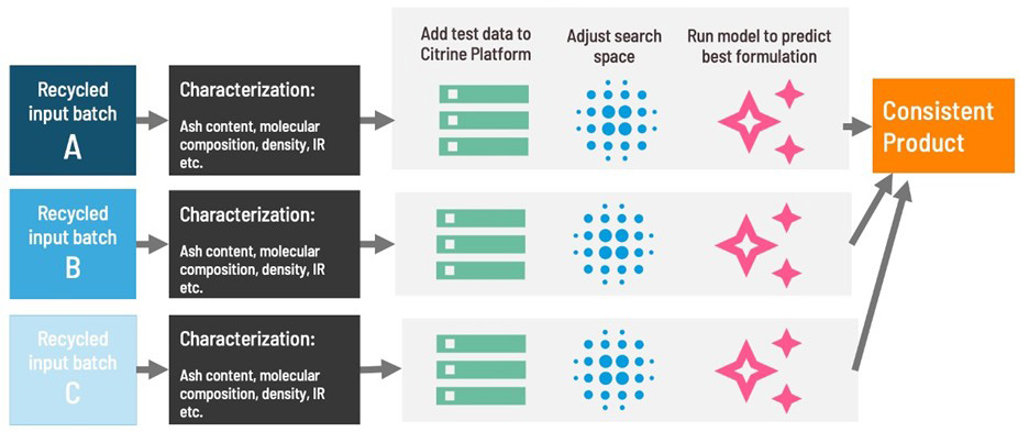 - This white paper covers how plastics used in packaging can include more recycled content by using AI to adapt formulations to varied post consumer recyclate: Agile Recycled Plastics Formulation Using AI: https://citrine.io/resources/white-papers/white-paper-agile-recycled-plastics-formulation-using-ai/