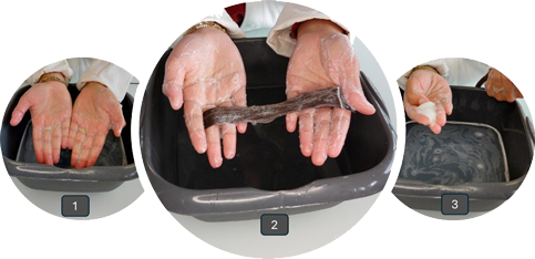 To define the appropriate descriptors, the team based their approach on consumer gestures when using solid shampoos, which typically involved holding the bar between the hands to create foam before applying it to the hair.