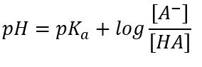 After establishing that only the free acid HA is useful to us – we should find a way to estimate, and ideally calculate, the amount of HA that is available in solution under specific conditions. For this purpose, the Henderson-Hasselbalch equation (5) is a fundamental tool, as it describes acid-base equilibria by the following equation: