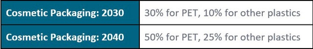 From Jan 2030 and Jan 2040, plastic packaging should contain a minimum percentage of recycled content recovered from post-consumer plastic waste, calculated as an average per manufacturing plant and year.