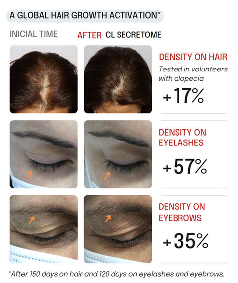 Figure 11. Global hair growth activation after 150 days of treatment on hair (Microphotography; TrichoScan®; Tricholog GmbH, Freiburg im Breisgau Germany) and 120 days of treatment on eyelashes and eyebrows.