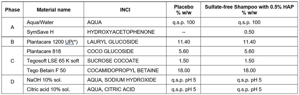 Table 1. Shampoo test formulations for ex vivo scalp study.