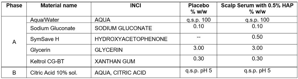 Table 2. Scalp serum test formulations for ex vivo scalp study.