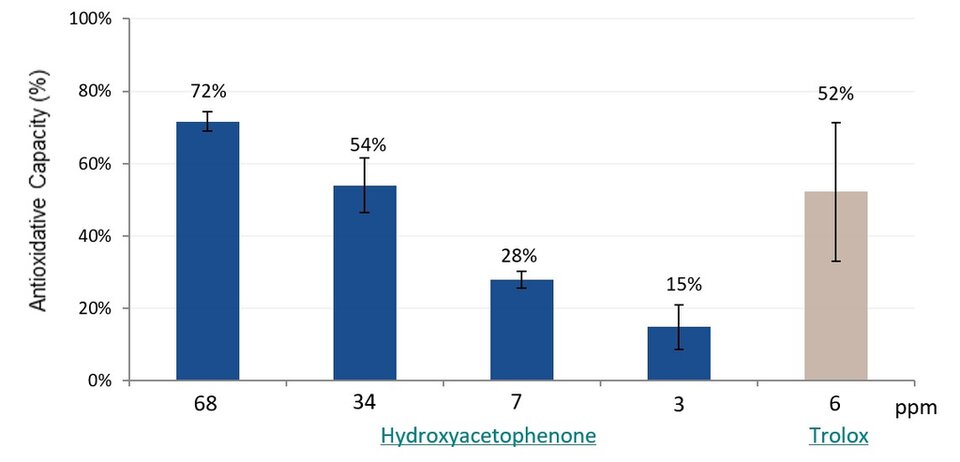 Figure 1.In vitro test results of the antioxidant activity of Hydroxyacetophenone in comparison with the positive control Trolox in an ABTS assay.